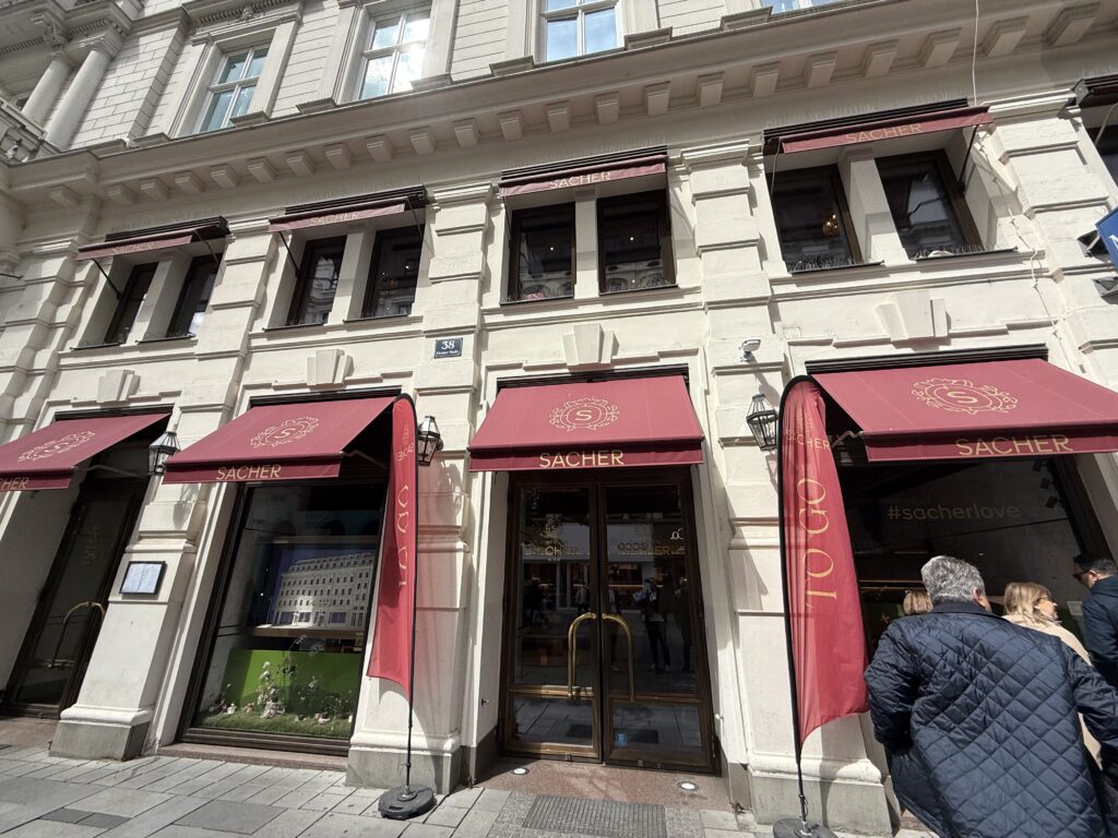 ここはウィーン名物のチョコレートケーキ「ザッハトルテ」の本家として知られているカフェで、観光客にも非常に人気のあるお店です。国立歌劇場の前にあります。
